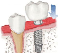 Implants are artificial tooth roots (screws), made of pure titanium or titanium-alloy, which are inserted (anchored) into the jaw, where they perform the function of the natural tooth that has been lost.