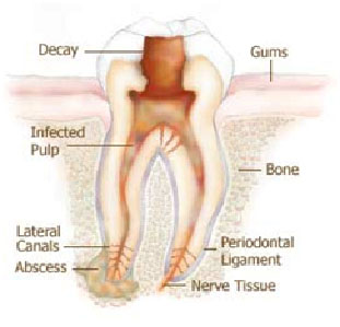 It is a procedure where a badly decayed or fractured or dead tooth is saved by removing its soft part (pulp) from the crown & the root of the tooth. Pulp is located in the core of the crown & root of the tooth. It is like mummifying a dead tooth to preserve it.