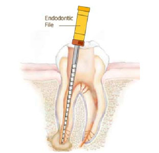 Special files are used to clean the infection andunhealthy pulp is removed out of the canals.Then they shape the canals for the filling material. Irrigation is used to help clean the canals and remove debris.