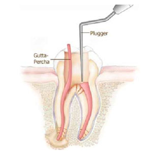 The canals are filled with a permanent inert rubber material called gutta-percha cones. This helps to keep the canals free of infection or contamination & fills the dead space.