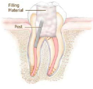 In some cases, a post is placed into the root next to the gutta-percha. This gives the crown more support.