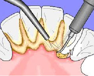 Scaling/cleaning of teeth is a procedure by which the dentist through an ultrasonic scaler removes the plaque, tartar & food particles from the tooth surface and surface of restorations. Tartar/ Calculus appear as yellow /brown/blackish hard deposits between gums and teeth.